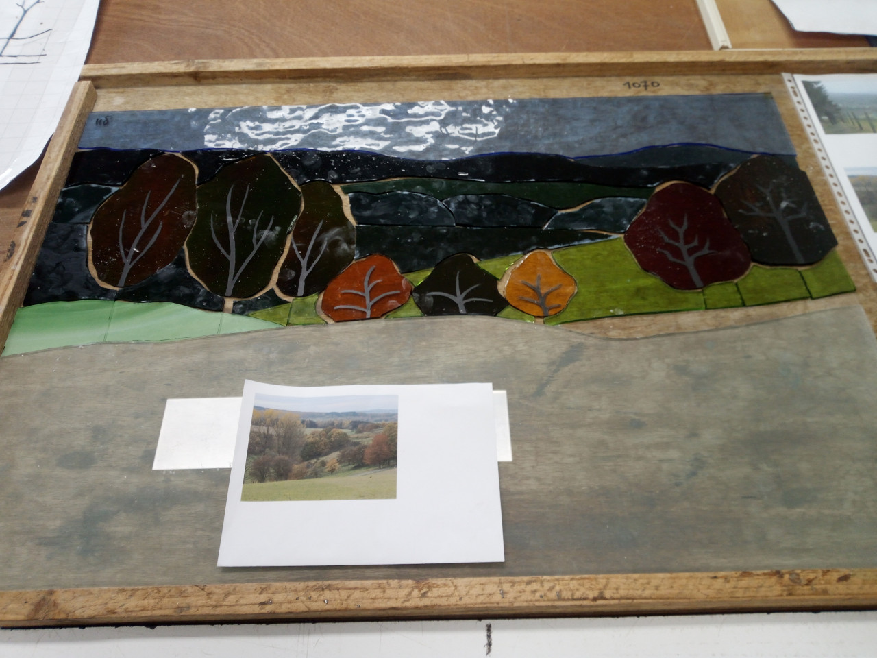 Ein Landschaftsfoto von Isert diente als Vorlage für eine Bleiverglasung zum Aufhängen, als Sichtschutz oder Dekoration.